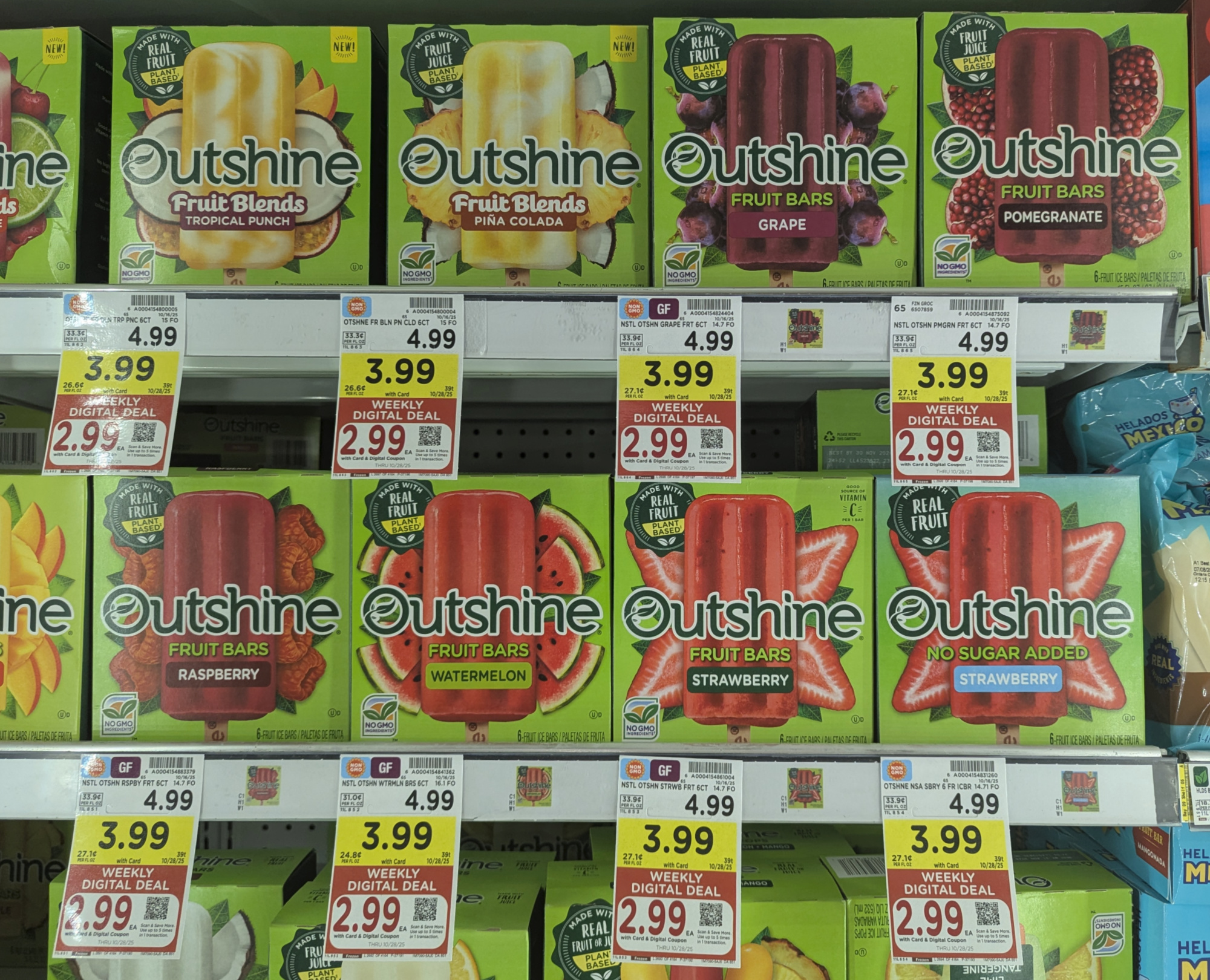 –$1/1 Outshine Fruit Bars, 6 ct, Kroger Super Saver Digital Coupon (use up to 5 times in a single transaction)