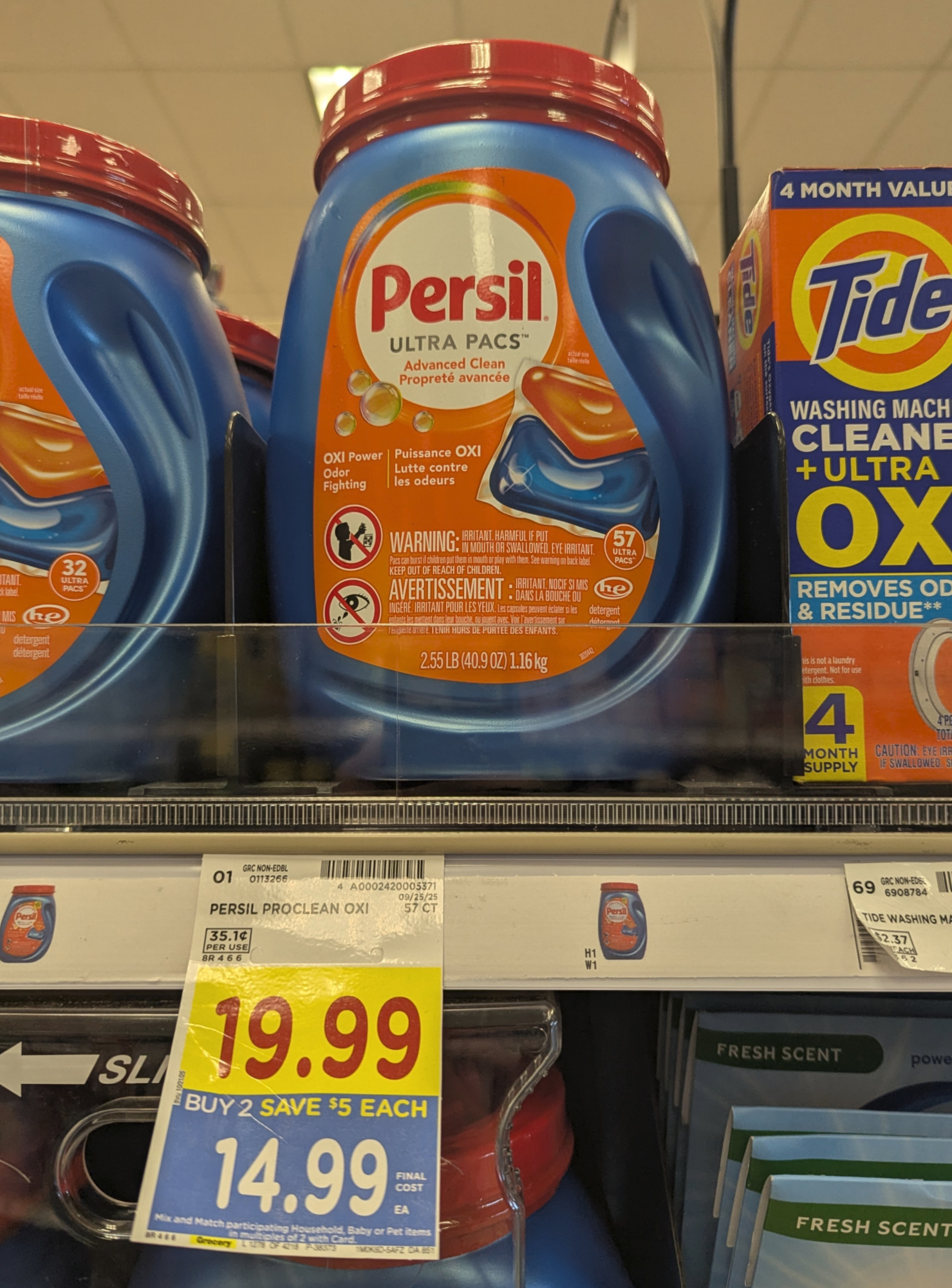 Score a very nice discount on Persil Ultra Pacs at Kroger. After discounts you can get the detergent as low as $9.99 each the next time you shop.