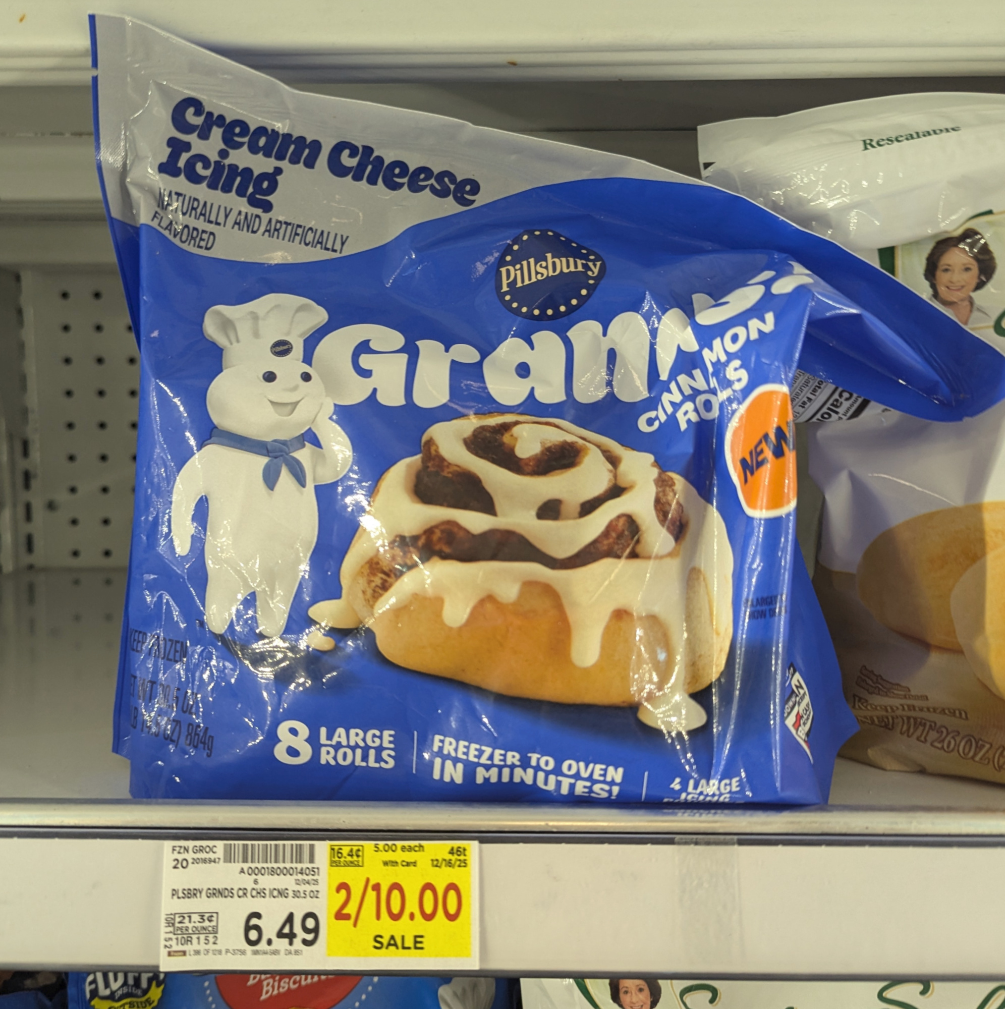 Pillsbury Frozen Cinnamon Rolls, 8 ct, 2/$10 (reg $6.49) – through 12/16