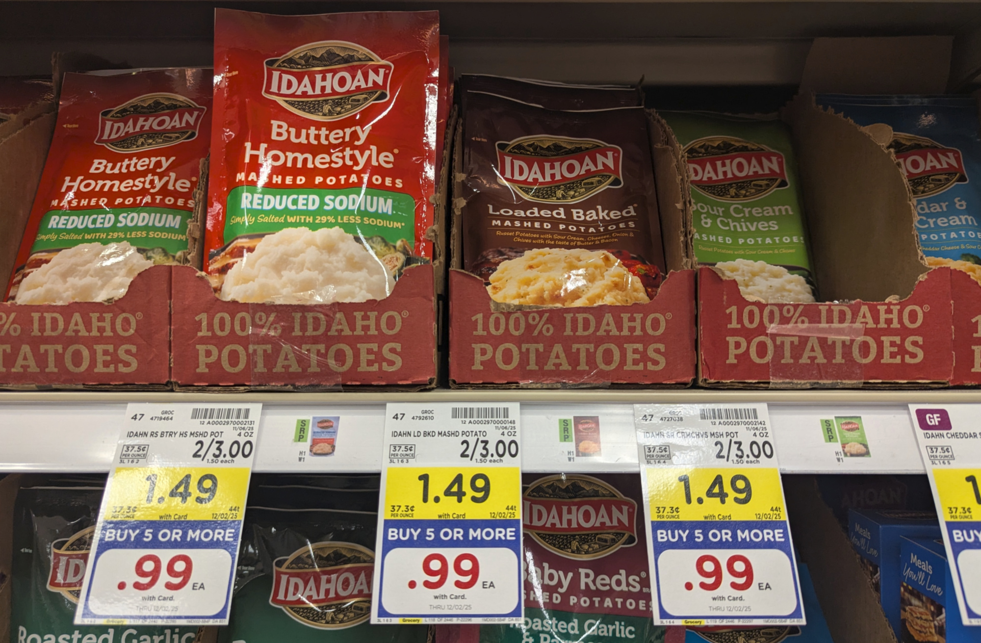 Idahoan Mashed Potatoes, 4 oz, $0.99 (reg 2/$3) – through 12/2