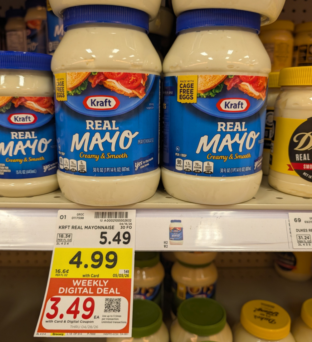 –$2/1 Kraft Mayo 30 oz, Kroger Super Saver Digital Coupon (use up to 5 times in a single transaction)
