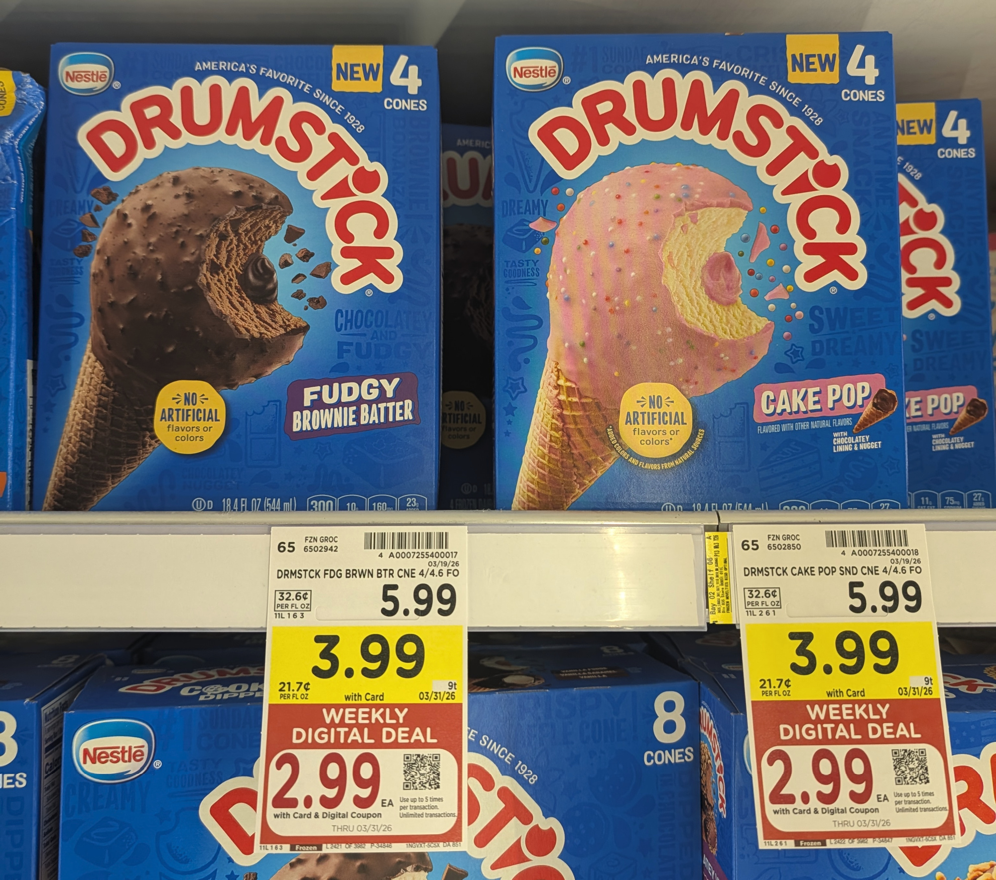 –$1/1 Nestle Drumstick Cones, 4 ct, Kroger Super Saver Digital Coupon (use up to 5 times in a single transaction)