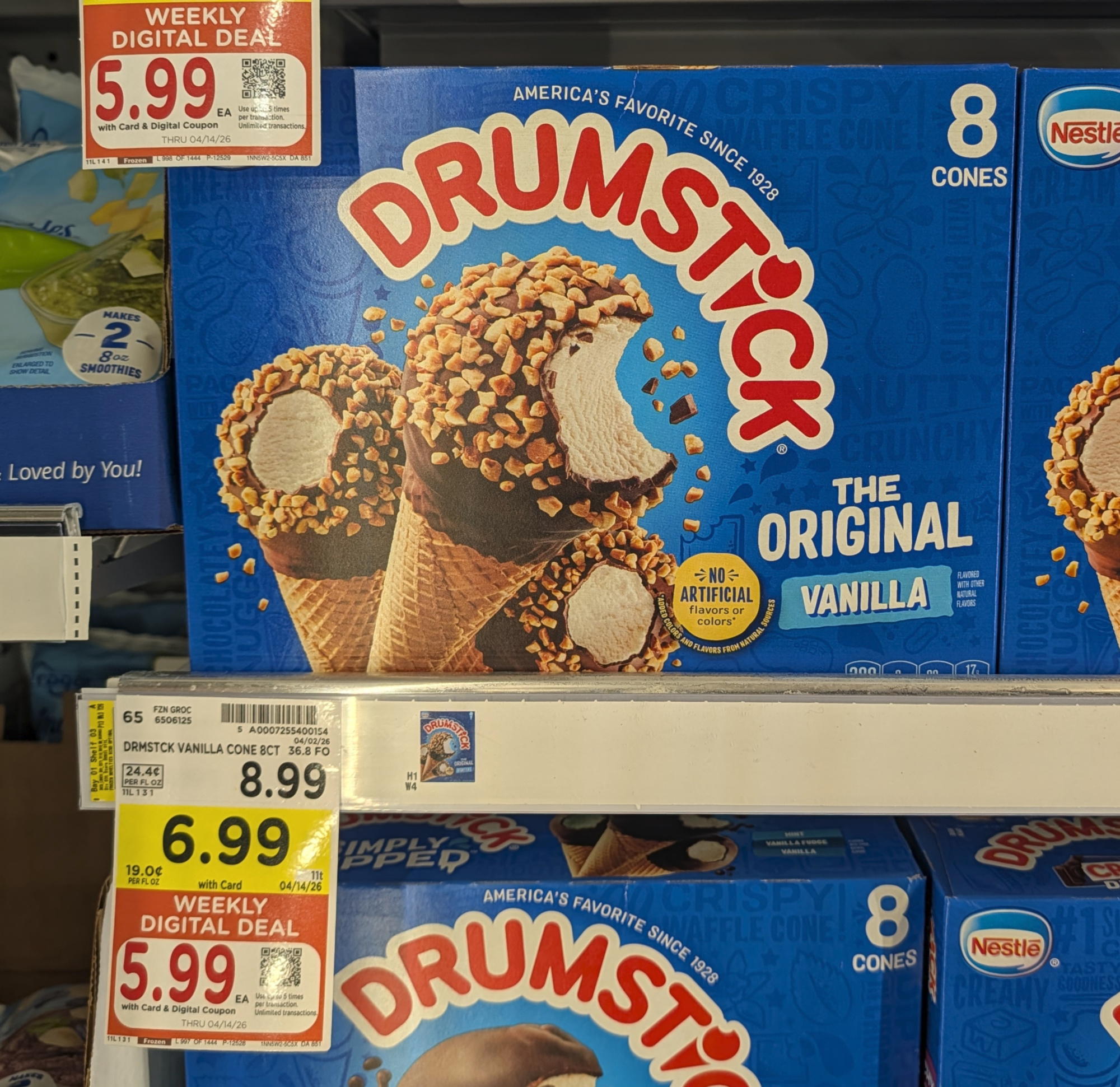 You can get a sweet deal on Nestle Drumstick Cones at Kroger right now! Combine the sale and digital coupon to get boxes for just $5.99 each. It’s the perfect time to stock your freezer with a tasty treat.
