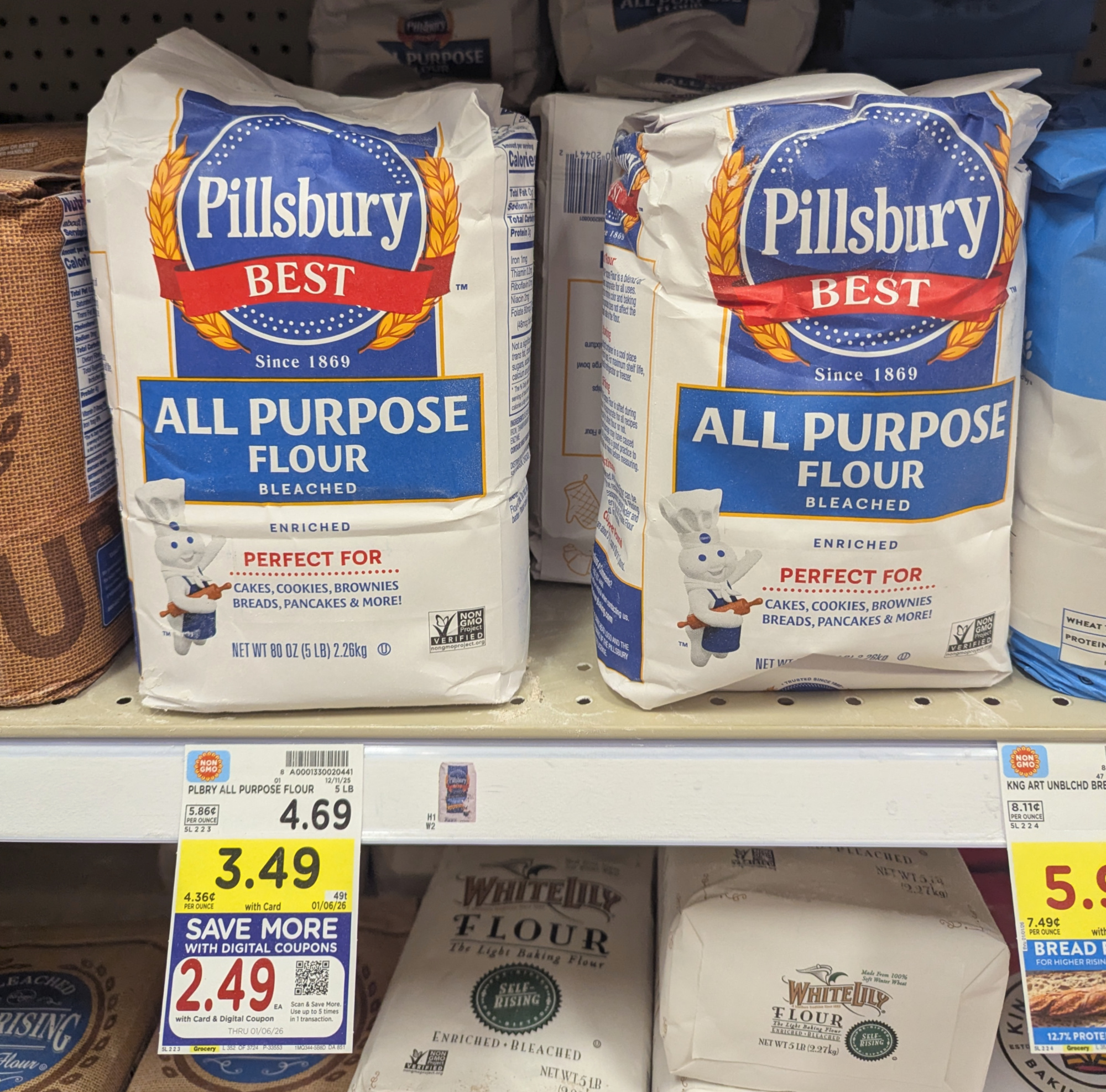 $1/1 Pillsbury Flour, 5-lb, Kroger Super Saver Digital Coupon (use up to 5 times in a single transaction)