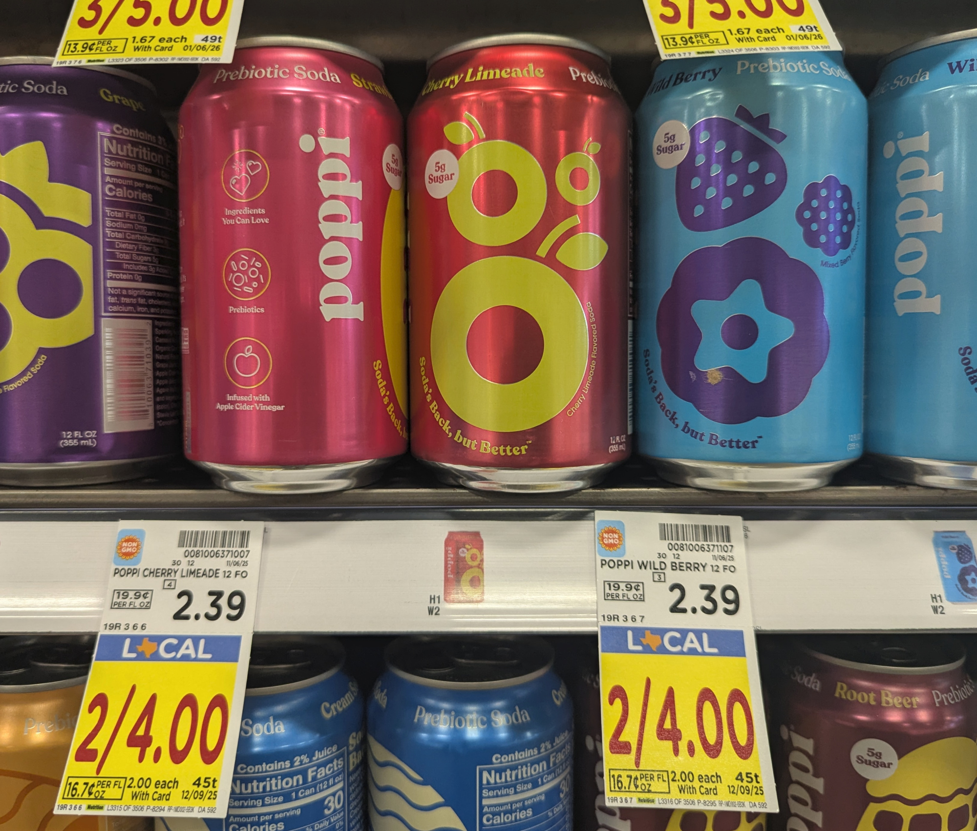 You can pick up a nice deal on Poppi Prebiotic Soda this week at Kroger. Combine the sale and cash back offer to pay just $1.50 per can!