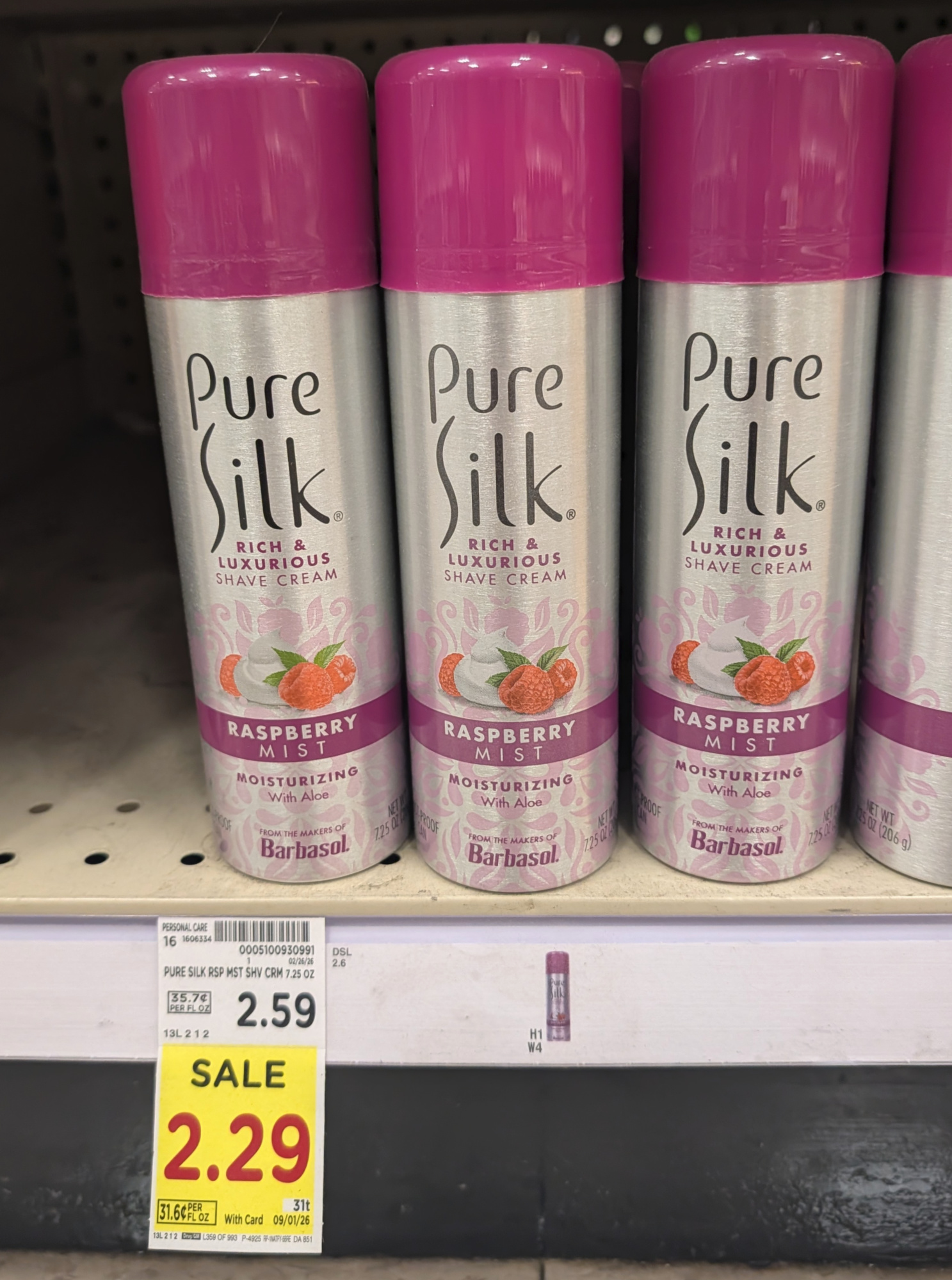 –$1/1 Pure Silk Shaving Cream 7.25oz (Kroger Digital Coupon)