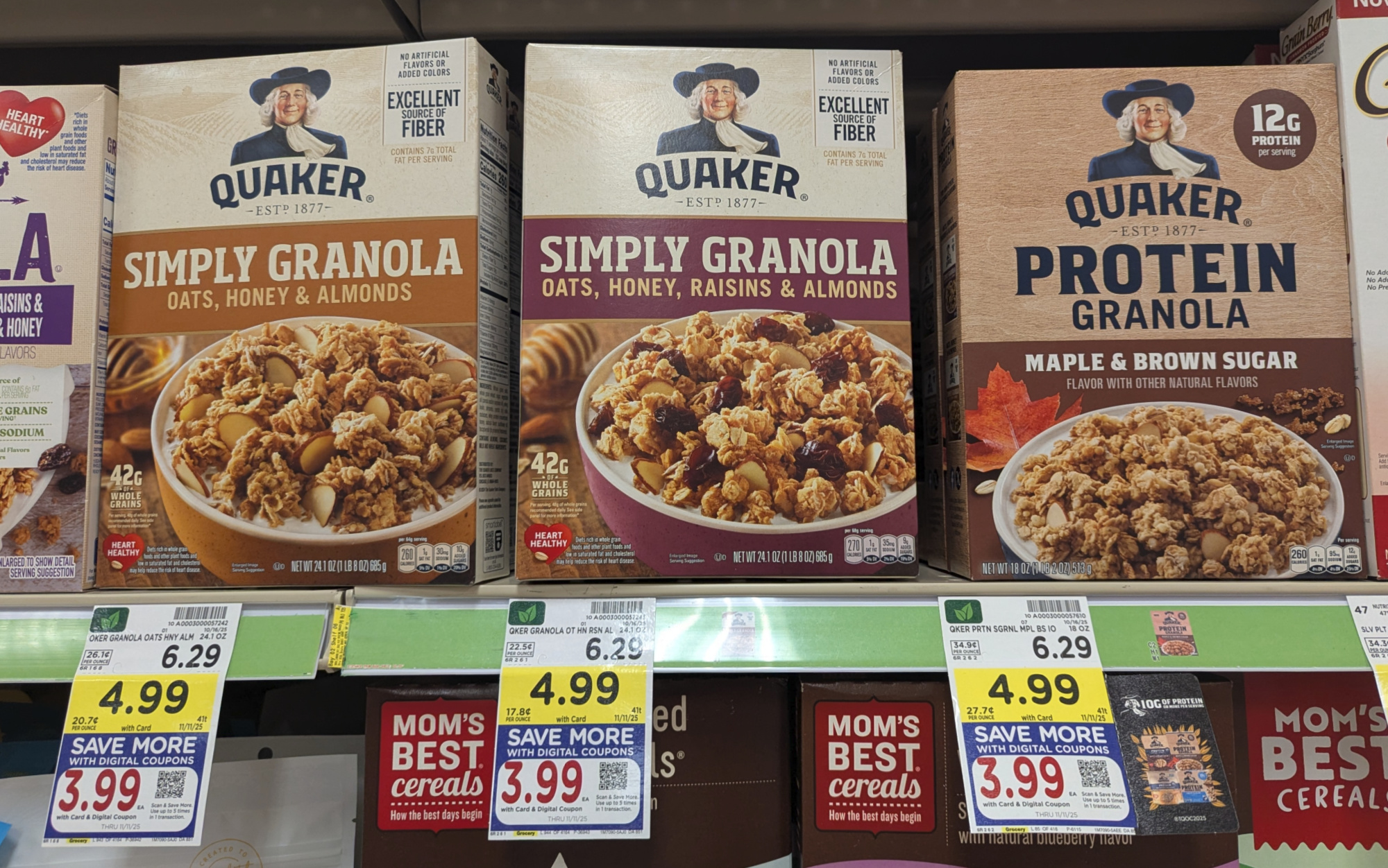 Grab the boxes of Quaker Protein Granola for a nice price at Kroger. Combine the sale and digital coupon to pick up the boxes for just $3.99 each. Get up to five at a super discount!