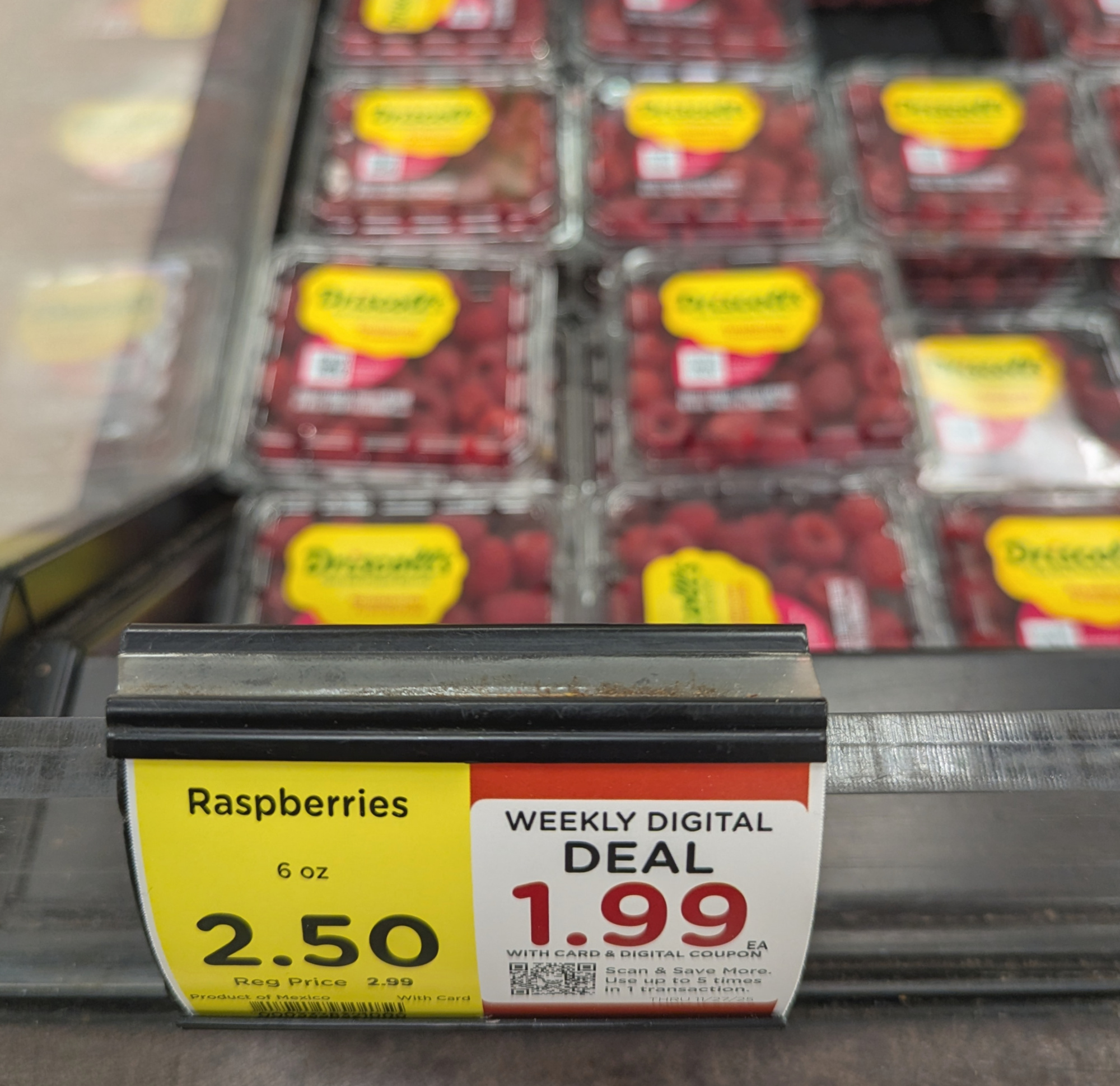 $0.51/1 Raspberries, 6 oz, Kroger Super Saver Digital Coupon (use up to 5 times in a single transaction)