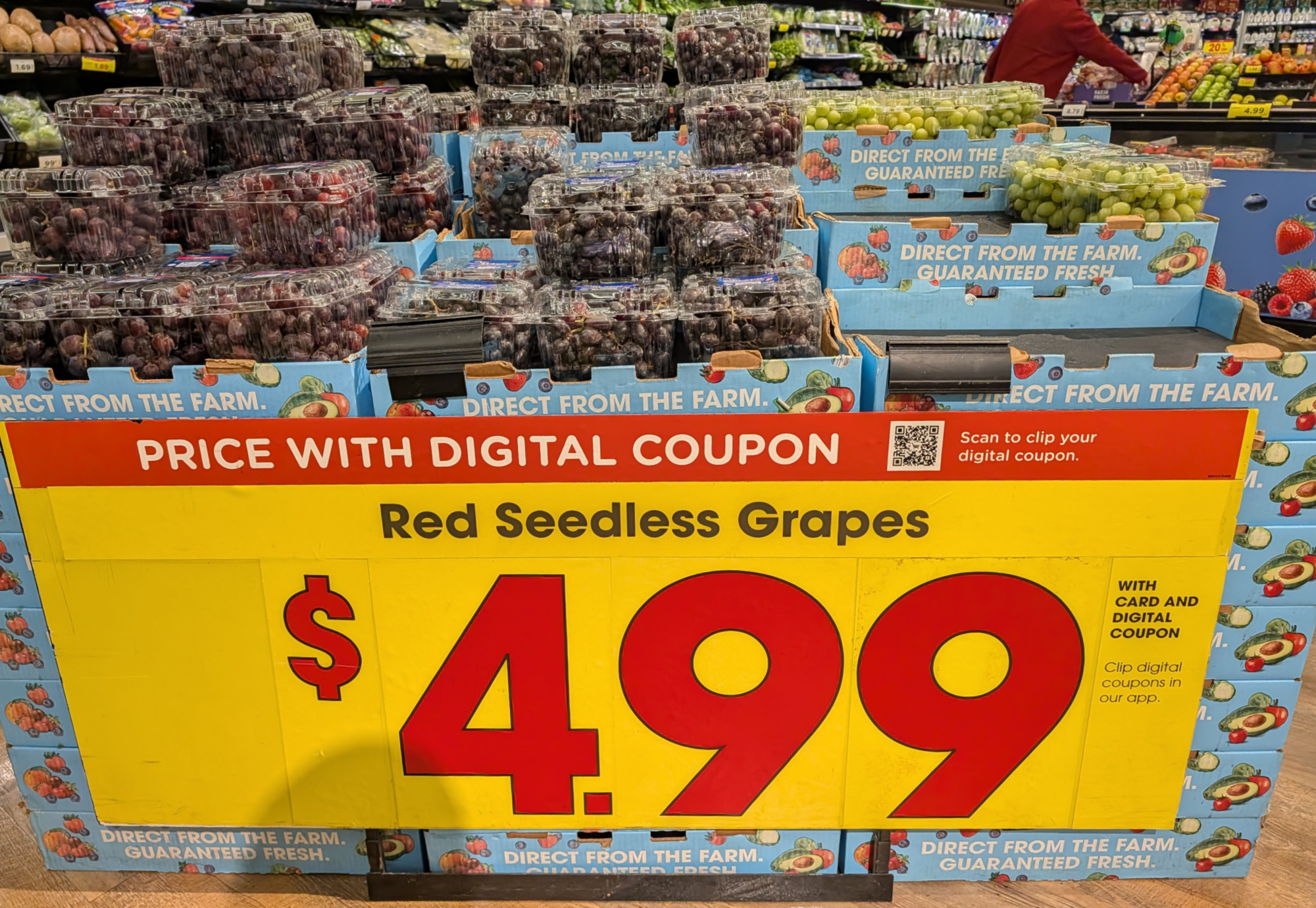 –$3/1 Kroger Red, or White Seedless Grapes, 3-lb Clamshell, Kroger Super Saver Digital Coupon (use up to 5 times in a single transaction)