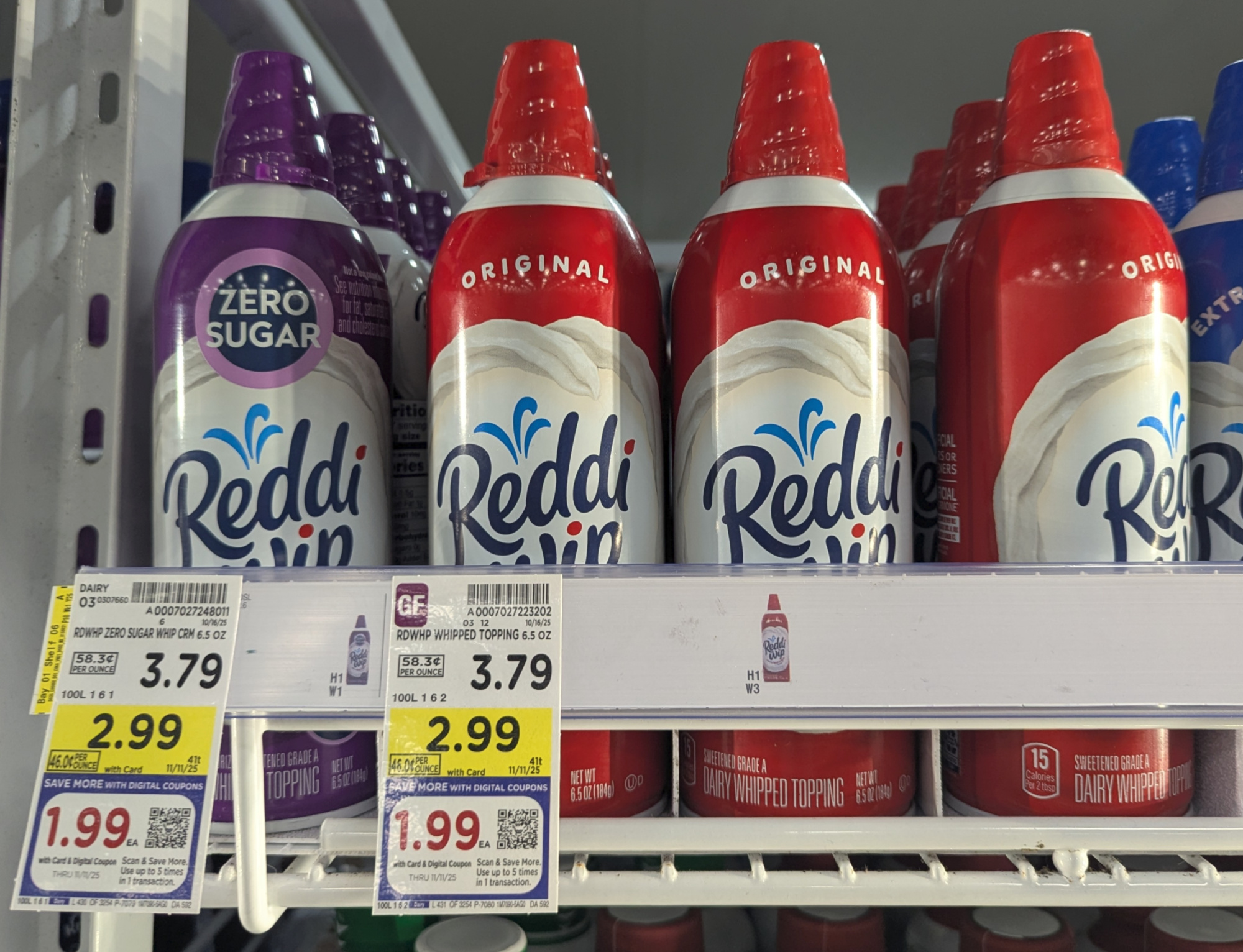 We have a Reddi-wip coupon that will make for a fantastic deal with the sale happening right now at Kroger. Grab the cans for just $1.99 each. Great time to whip up some sweet treats!
