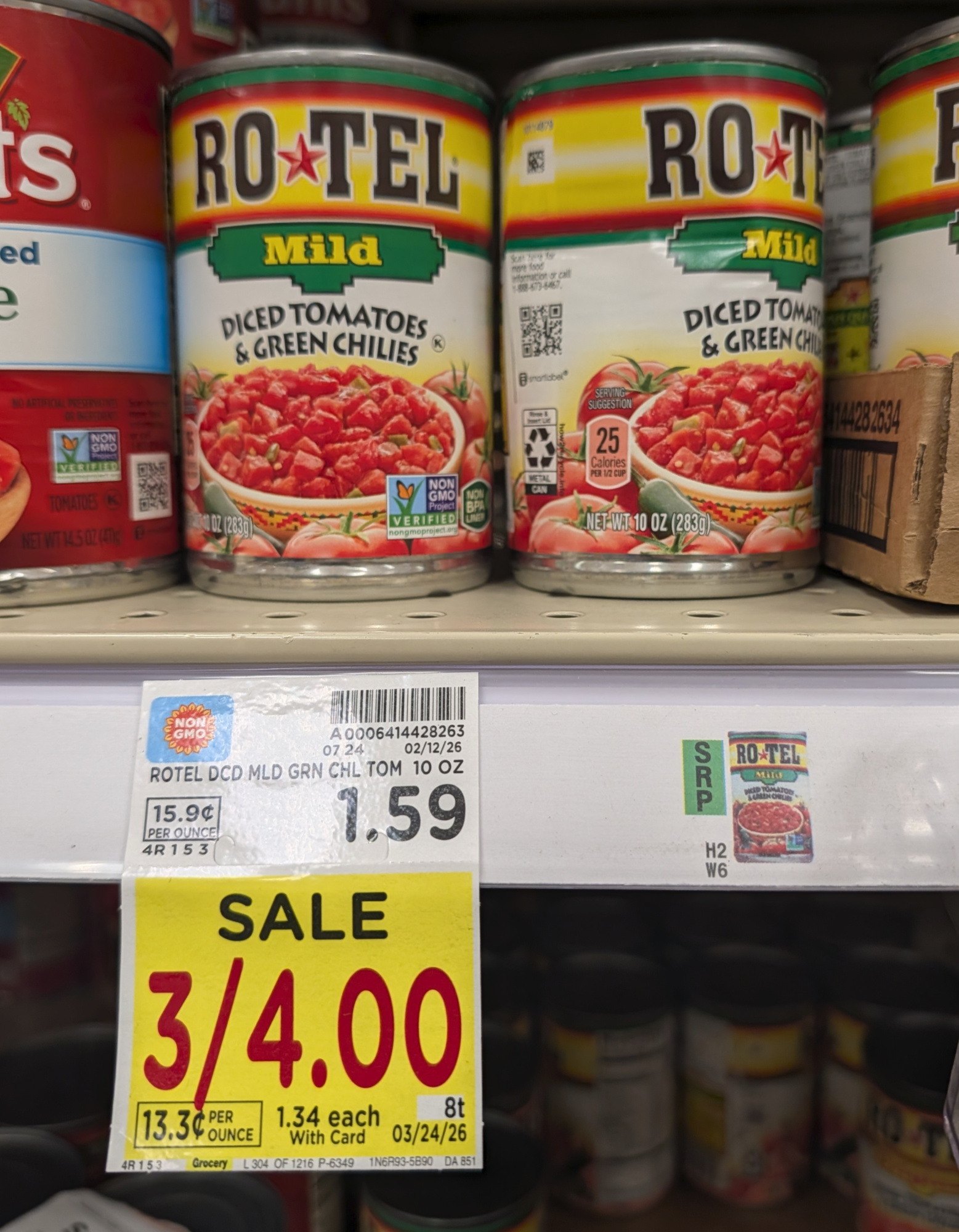 Head over to Kroger to get a couple of cans of Rotel Tomatoes at a nice price. Use the cash back offer to grab the tomatoes for as little as $1.22 per can the next time you shop.