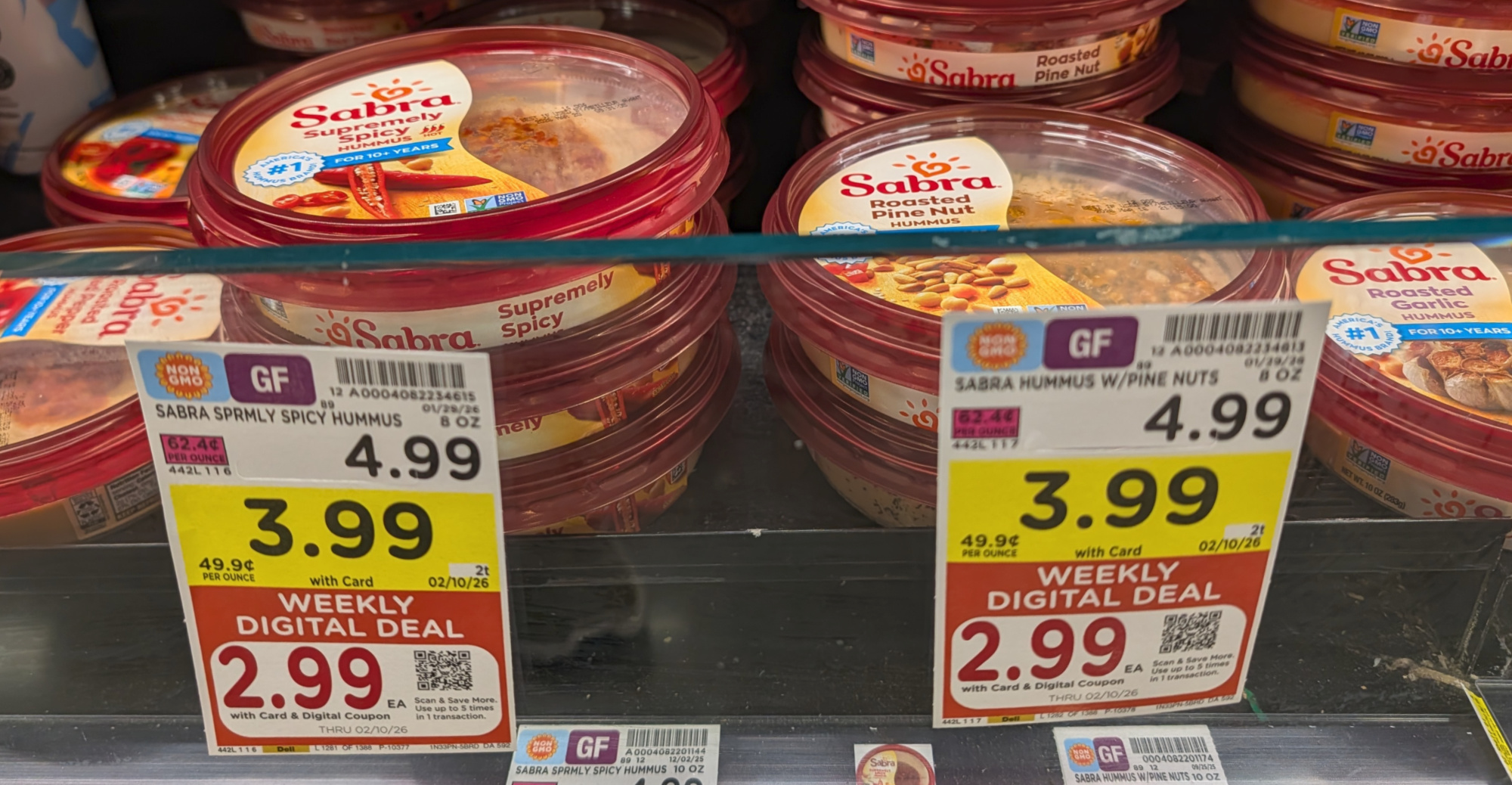 –$1/1 Sabra Hummus, 10 oz, Kroger Super Saver Digital Coupon (use up to 5 times in a single transaction)
