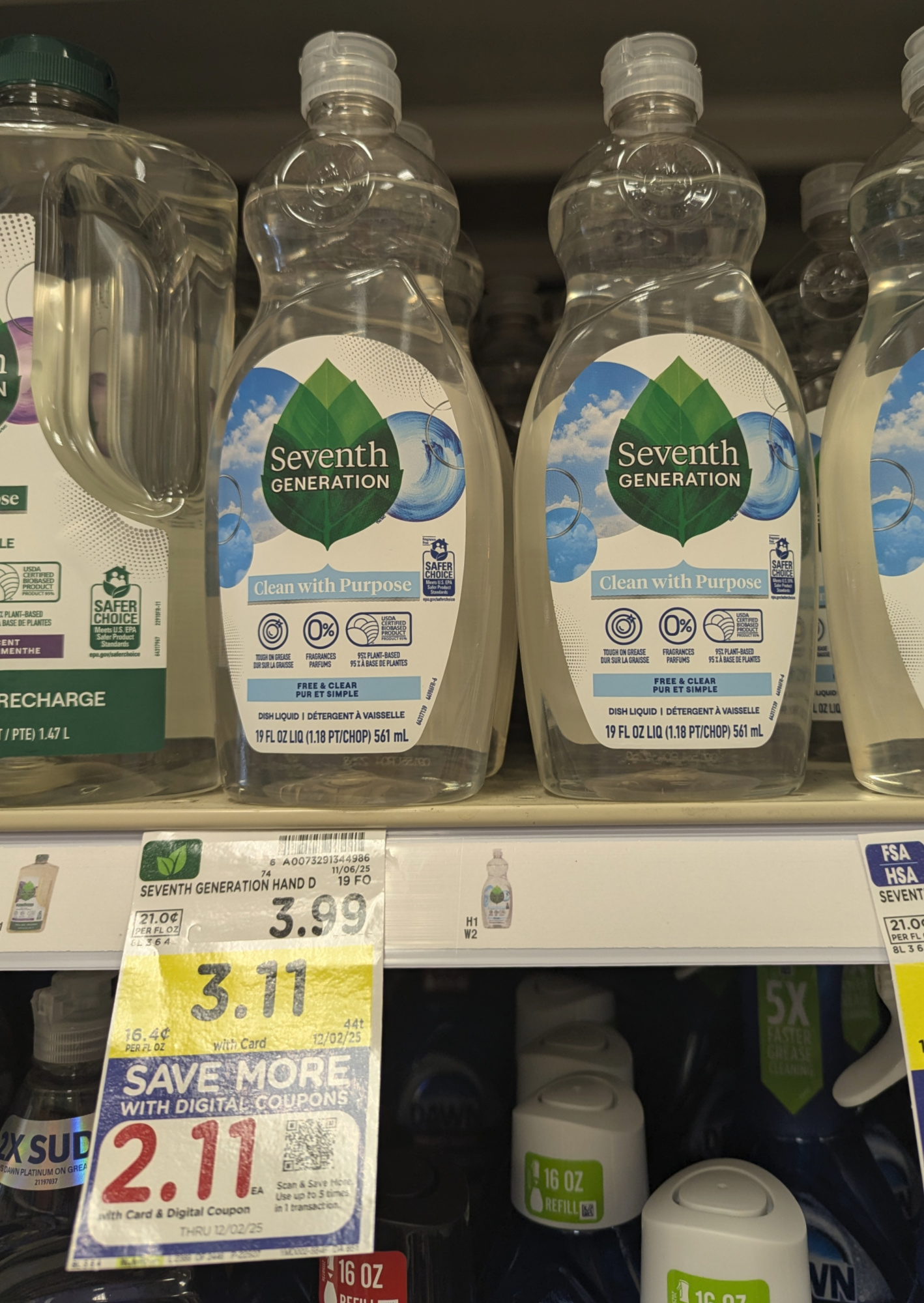 Seventh Generation Dish Soap, 19 oz, $3.11 (reg $3.99) – through 12/2