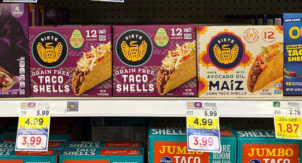 In addition to the cheap Siete Chips, you can also pick up a deal on Siete Taco Shells. After discounts, you pay as little as $2.49 per box.