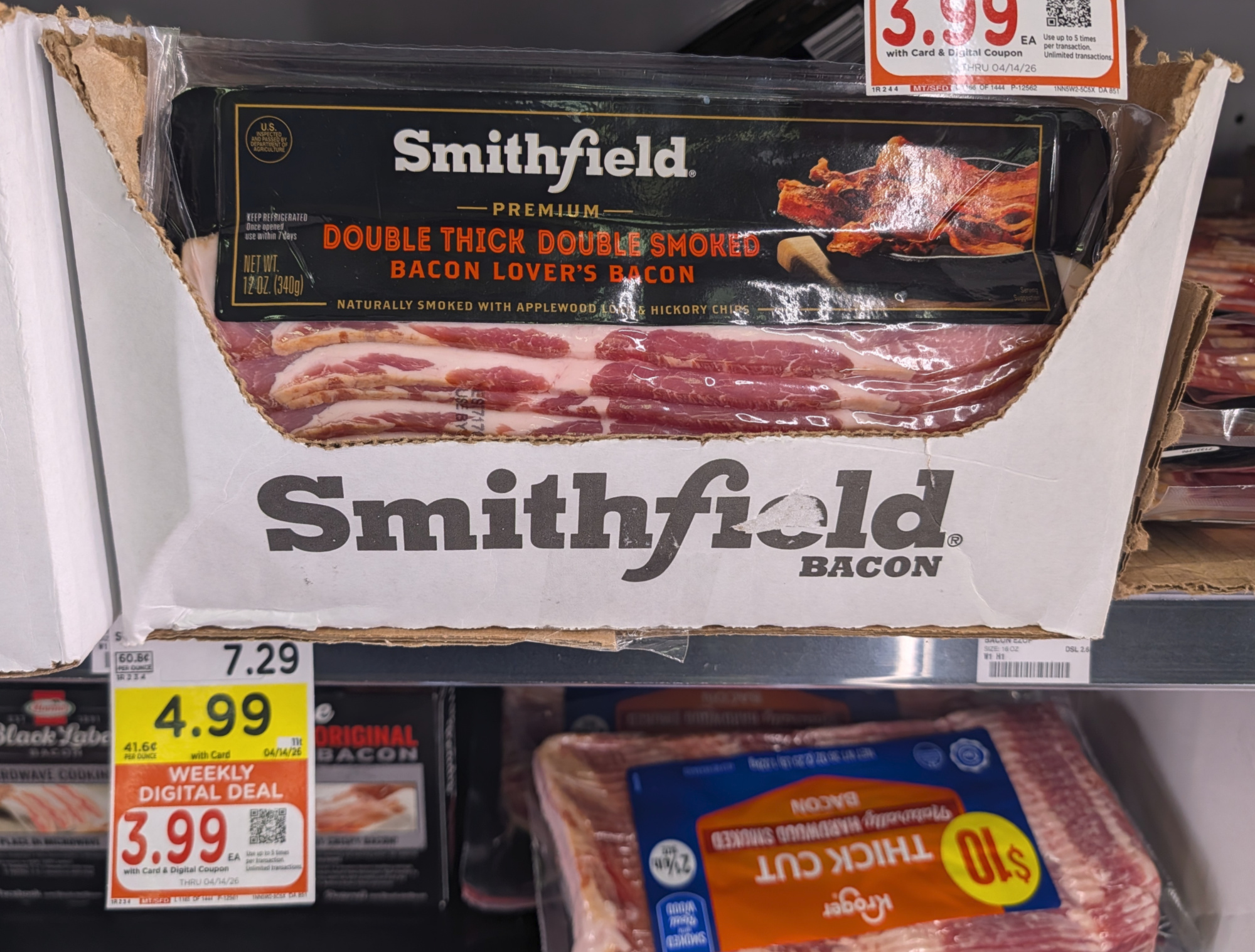 $1/1 Smithfield Bacon, 12 to 16 oz, Kroger Super Saver Digital Coupon (use up to 5 times in a single transaction)