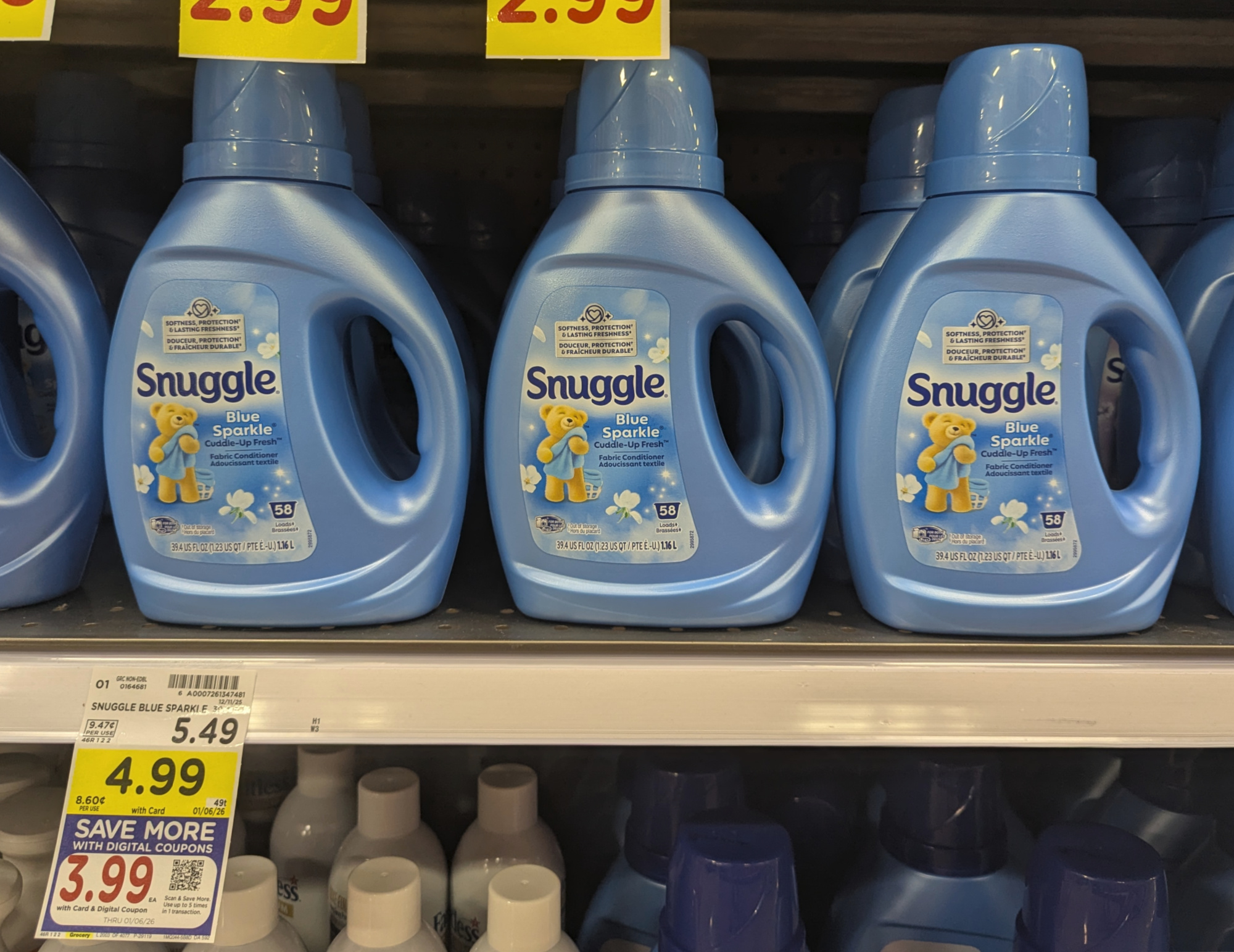 You can score a great deal on Snuggle products right now at Kroger. Get the liquid softener for just $3.99 per bottle.