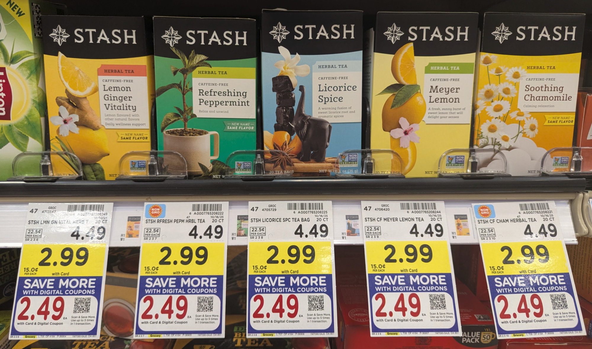 –$0.50/1 Stash Tea, 20 ct, Kroger Super Saver Digital Coupon (use up to 5 times in a single transaction)
