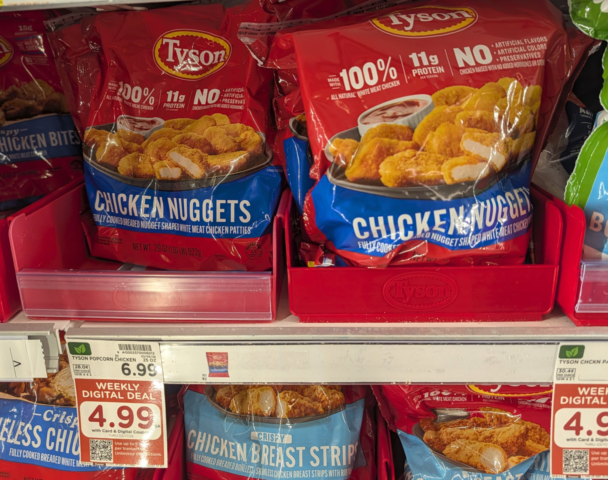 Serve up a quick meal and save some moolah. Load the digital coupon to get up to FIVE bags of Tyson Chicken for just $4.99 each this week at Kroger. If you have kids, you know these always come in handy!