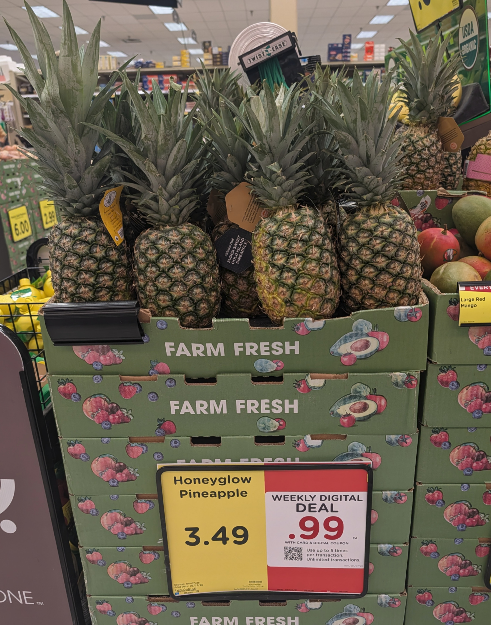 –$2.50/1 Whole Pineapple, Kroger Super Saver Digital Coupon (use up to 5 times in a single transaction)