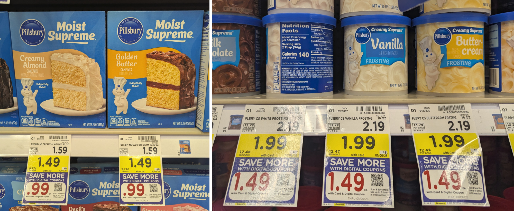 Pillsbury Frosting, $1.99 (reg $2.19) – through 1/6/26