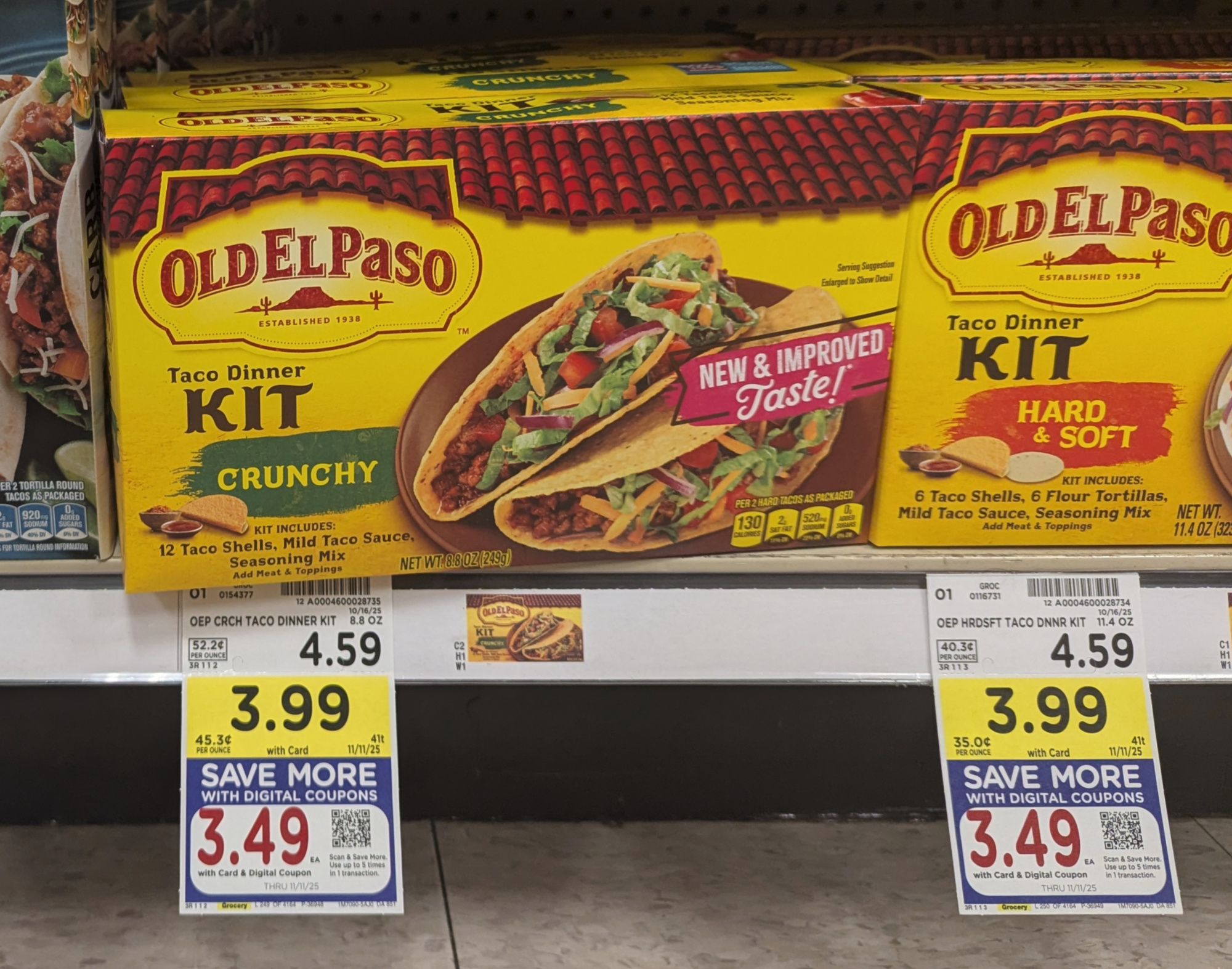 Get ready for Taco Tuesday and save some money on Old El Paso products. With the discounts, you can get the dinner kits for as little as $2.49 at Kroger!