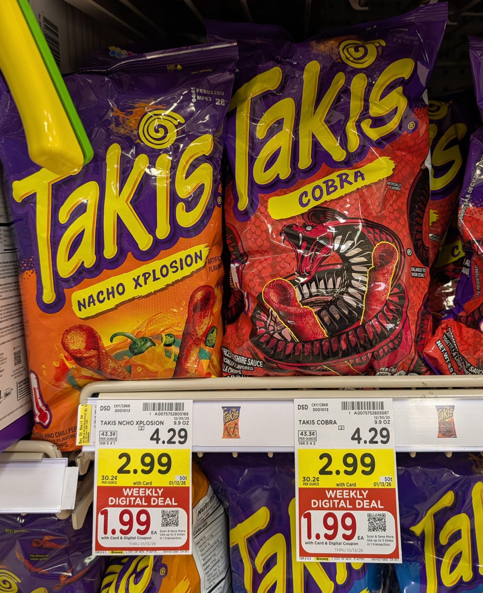 –$1/1 Takis Tortilla Chips, 6.5 to 9.9 oz, Kroger Super Saver Digital Coupon (use up to 5 times in a single transaction)