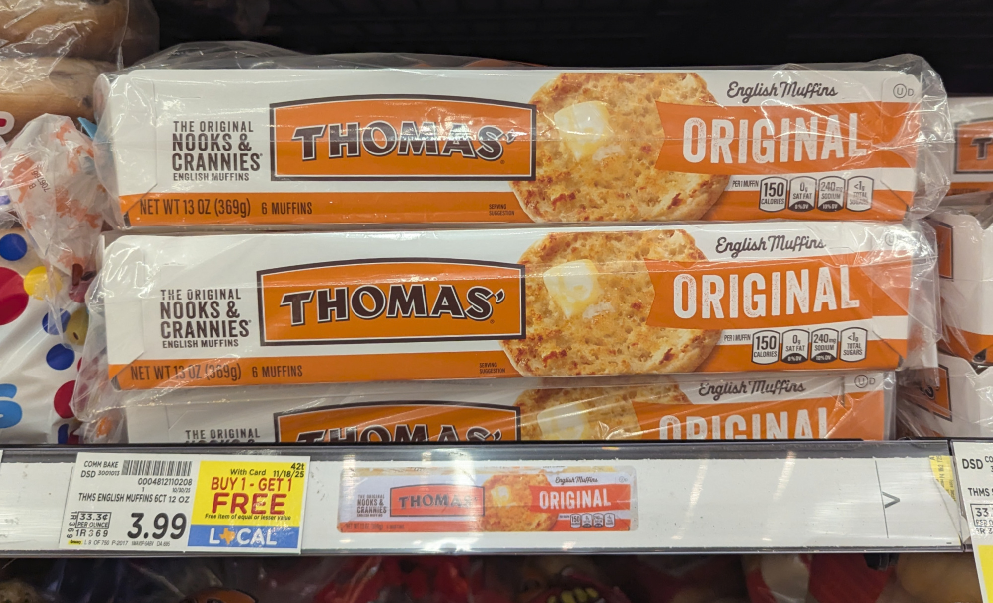 Thomas’ English Muffins, 6 ct, BOGO $3.99 – through 11/18