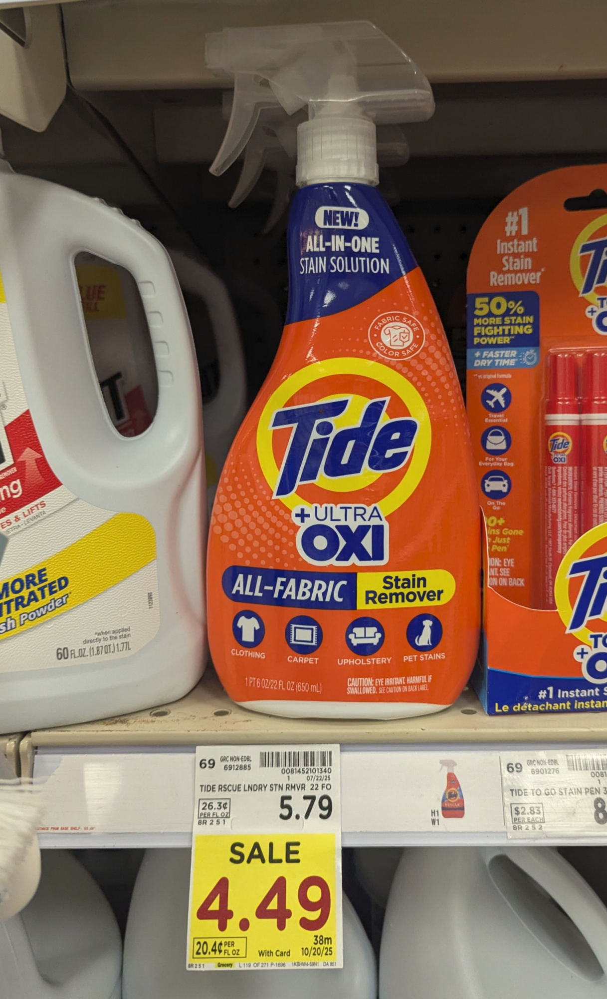 Grab the bottles of Tide Rescue Laundry Stain Remover Spray for just $3.49 each. Restock your laundry supplies and save now at Kroger.