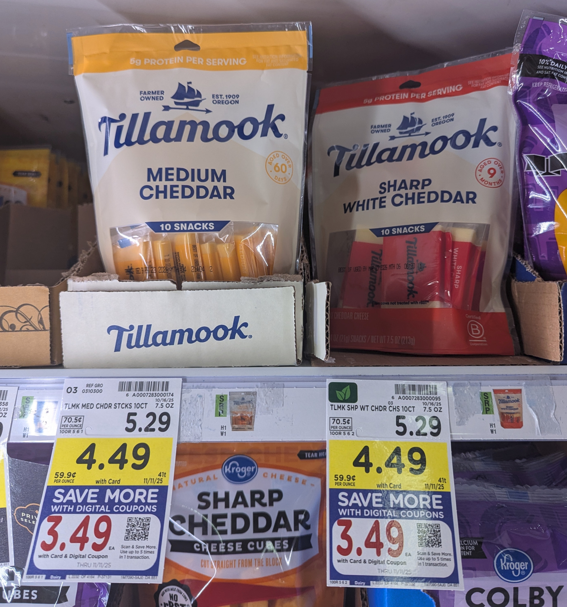 –$1/1 Tillamook Snack Portions or Slices (7-12 oz), Kroger Super Saver Digital Coupon (use up to 5 times in a single transaction)
