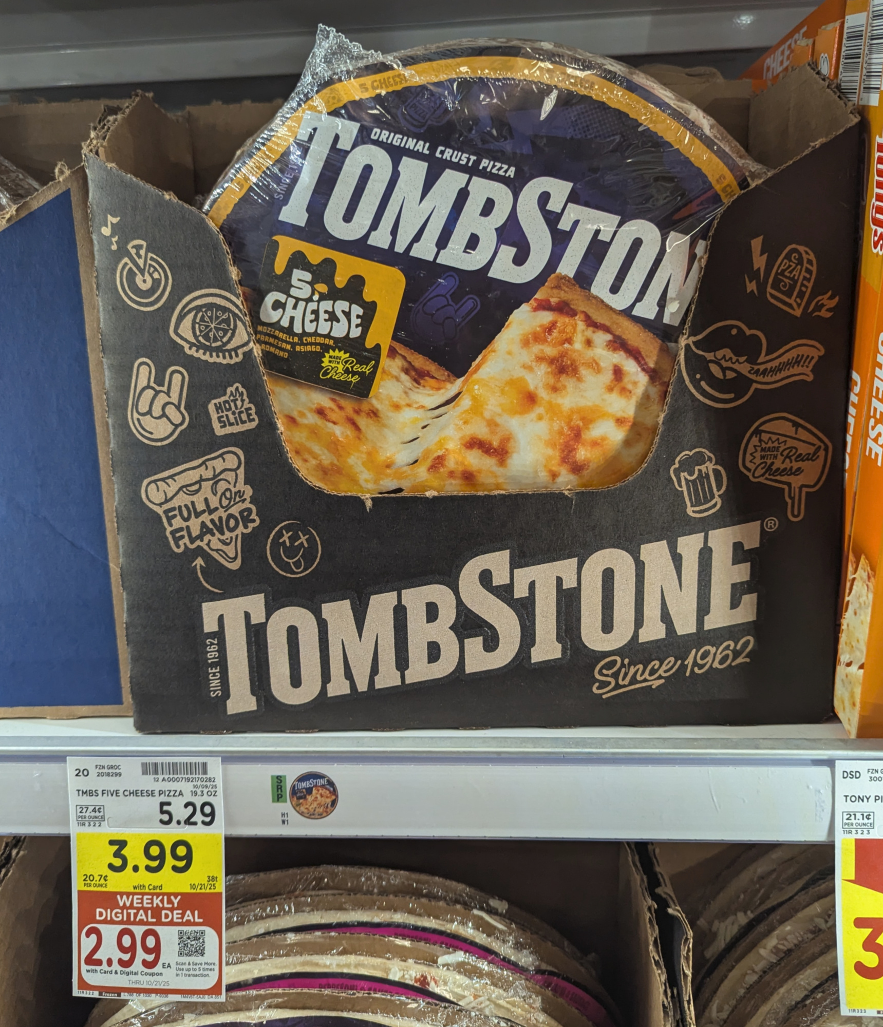 –$1/1 Tombstone Pizza (17.2-27 oz), Kroger Super Saver Digital Coupon (use up to 5 times in a single transaction)