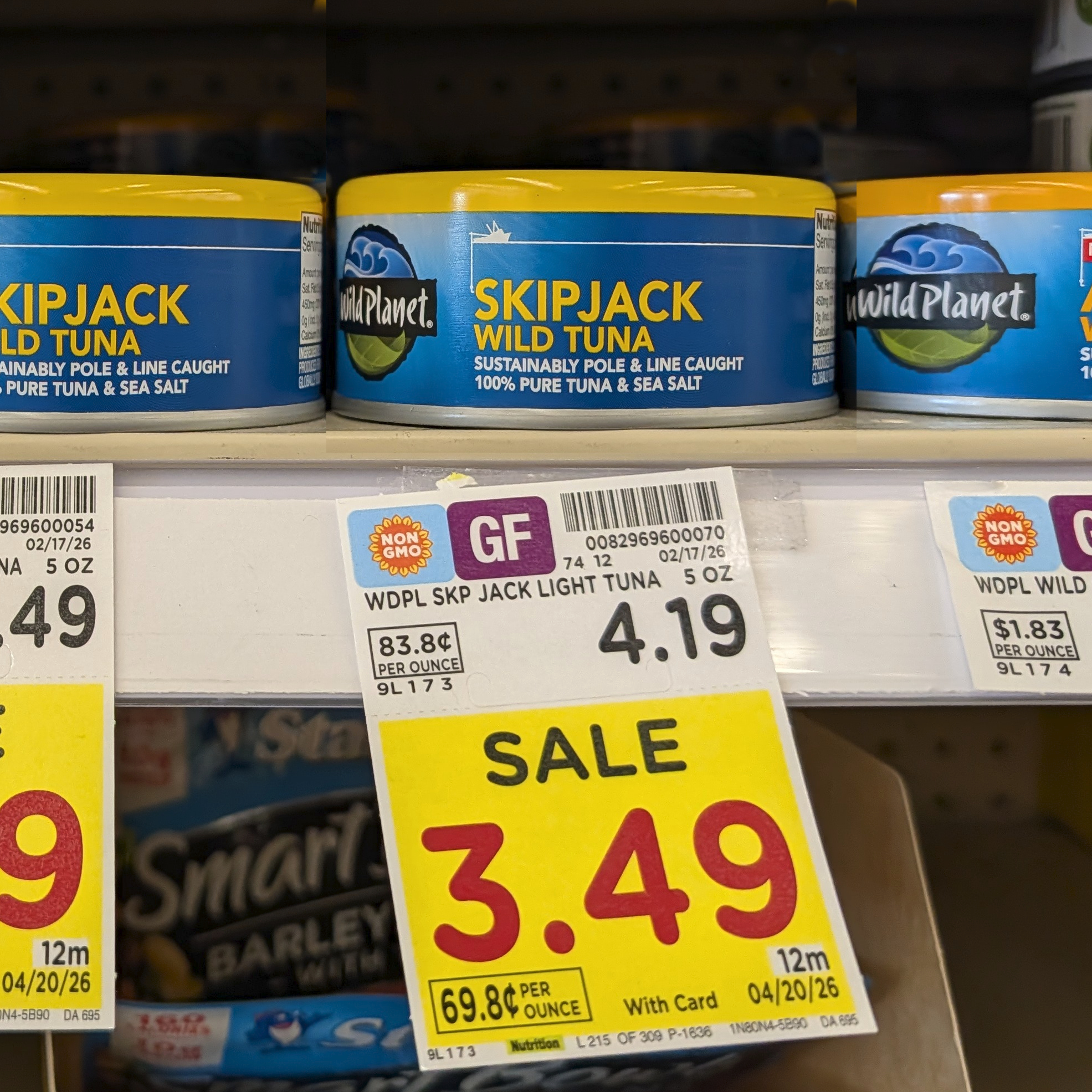 Stock up on high-quality protein without the premium price tag! Right now, you can grab Wild Planet Skipjack Wild Tuna for just $1.99 at Kroger by combining the sale with a digital coupon.